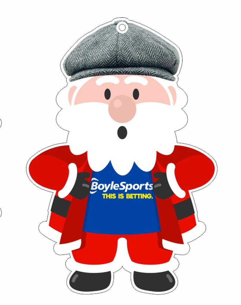 El adorno personalizado de Revelación de Camisa de Santa es un colgante navideño único suministrado con un cordón dorado para colgar. Sin cargos de configuración o producción.