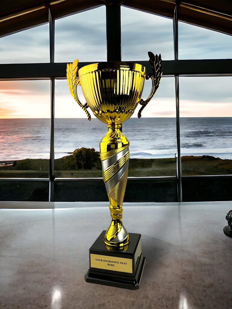 La Copa de Oro y Plata de Denver sobre Base Negra es un galardón excepcional. Consta de una base de PVC negro con peso, columnas de plástico en oro y plata, y un tazón metálico. Disponible en 3 tamaños: 19 1/4", 16 1/2" y 13 1/4".