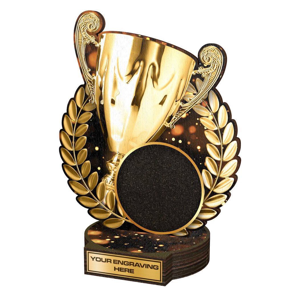 La Copa de Trofeo de Madera Real con Inserción de Logotipo Grove es un impresionante reconocimiento ecológico elaborado en madera de abedul natural de 5/16" de grosor, montado sobre una base circular de madera gruesa. Un producto sostenible que forma parte de una colección diseñada y fabricada en nuestro propio taller. No solo para personas conscientes del medio ambiente, este trofeo será el punto focal de cualquier ceremonia de premiación.