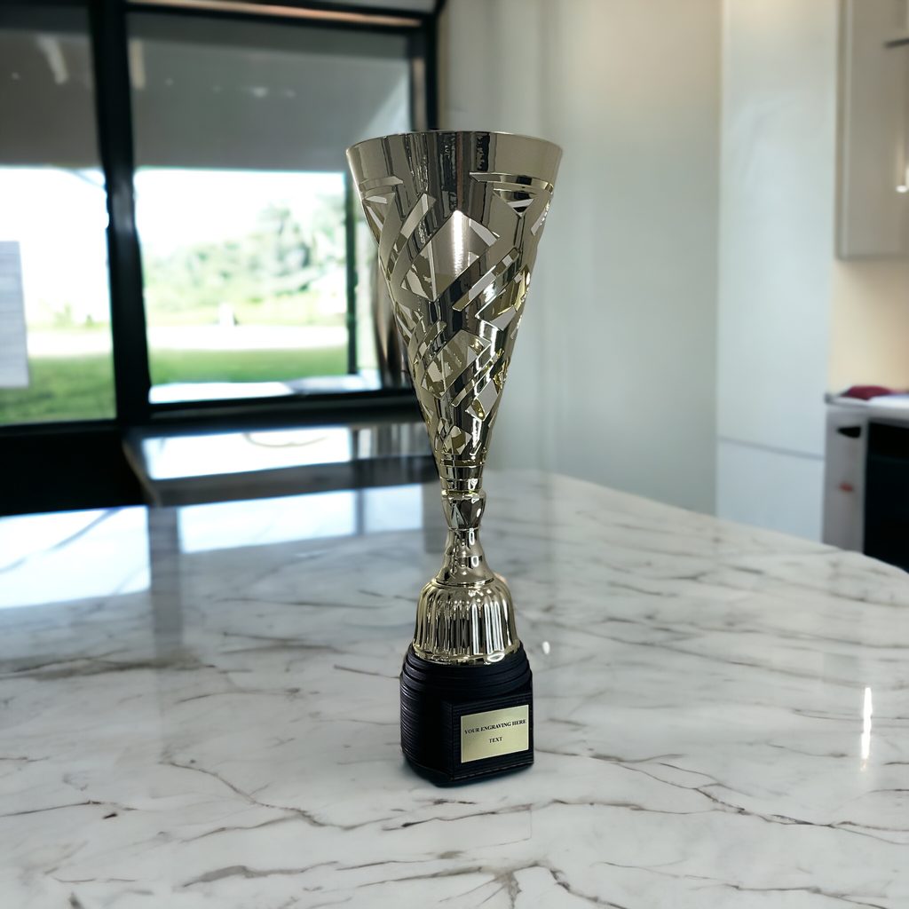 La copa láser César es una pieza impresionante de artesanía, elaborada expertamente con metal de alta calidad y montada sobre una base de plástico resistente. La copa está montada sobre una hermosa base de madera de abedul hecha a mano que añadirá un toque de elegancia y sofisticación a cualquier entorno.