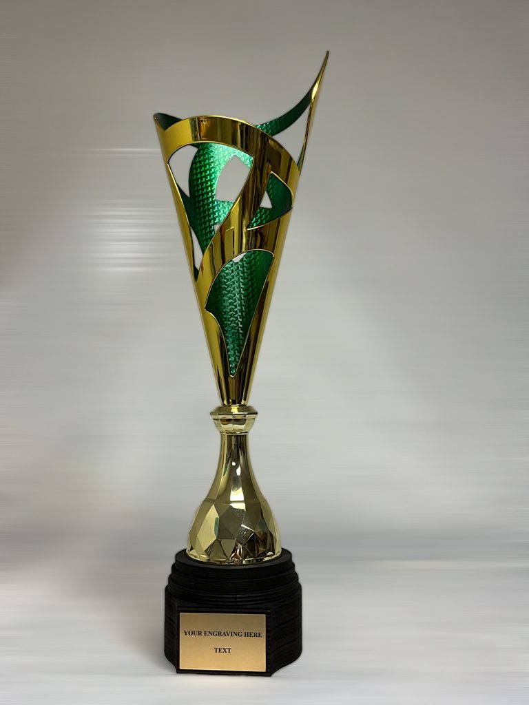 Presentamos la Copa Láser Havana Oro y Verde, una impresionante adición a nuestra creciente colección de reconocimientos modernos. Elaborada con plástico de alta calidad y elegantemente montada sobre una base única de madera de abedul, esta copa es una verdadera obra de arte.