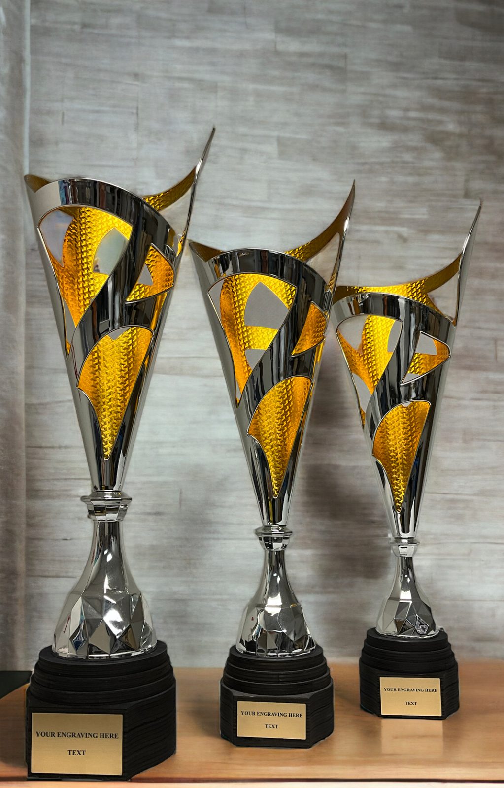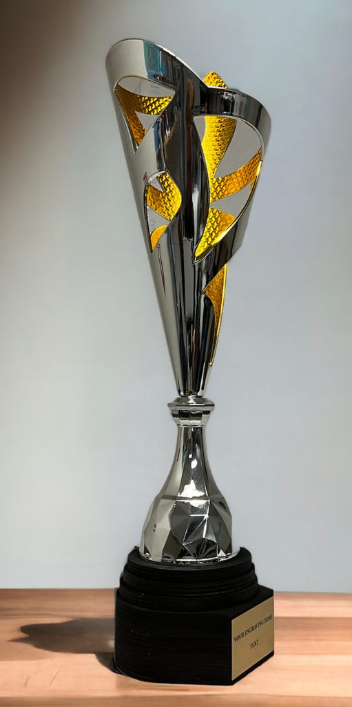 Presentamos la Copa Láser Havana Plata y Oro, una impresionante adición a nuestra creciente colección de reconocimientos modernos. Elaborada con plástico de alta calidad y elegantemente montada sobre una base única de madera de abedul, esta copa es una verdadera obra de arte.
