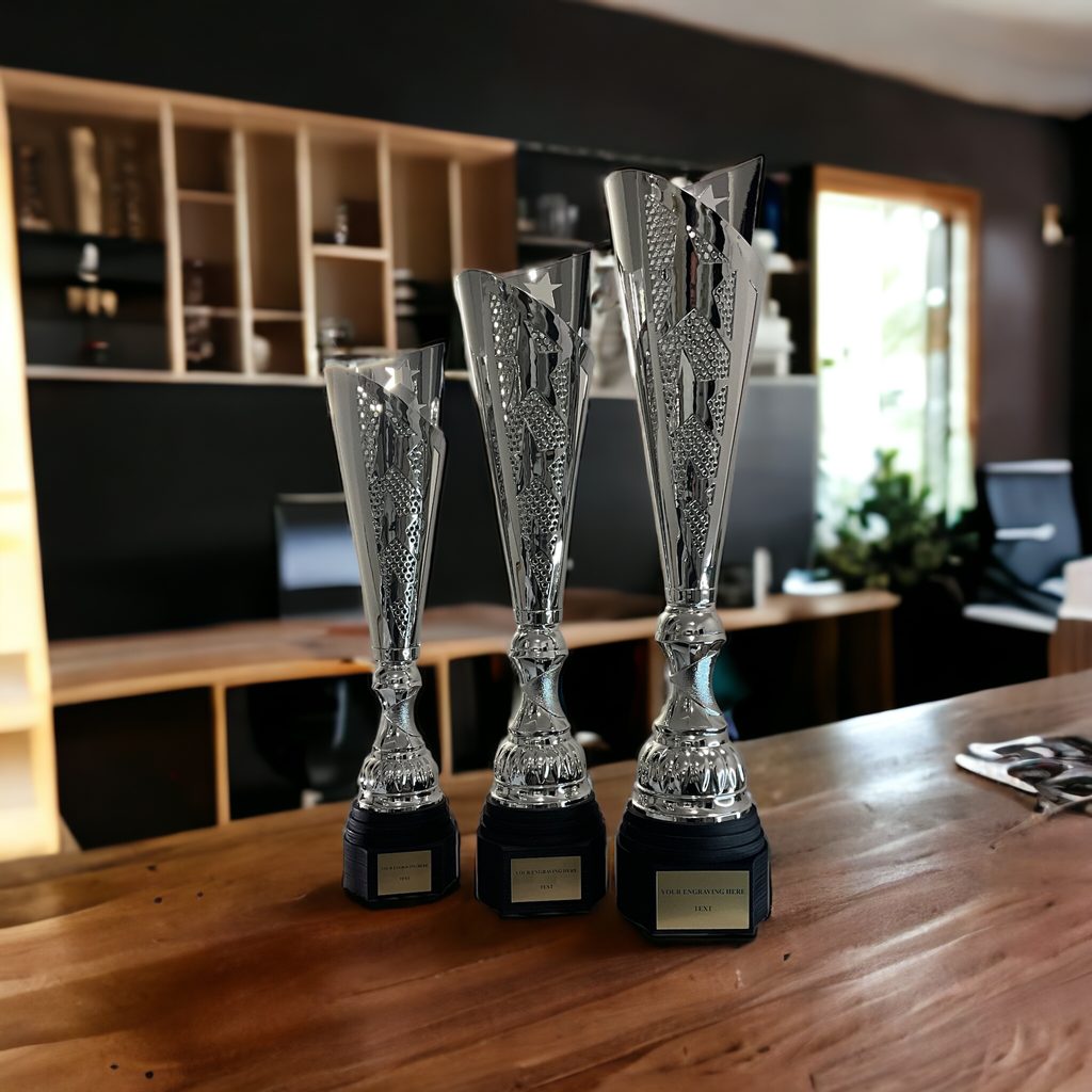 Como beneficio adicional, esta magnífica copa viene con una placa base grabada complementaria que le permite personalizarla con su propio mensaje o diseño único. Ya sea que desee reconocer un logro excepcional, conmemorar una ocasión especial o simplemente agregar un toque de refinamiento a su hogar u oficina, la copa láser Silver Star es la elección perfecta.
