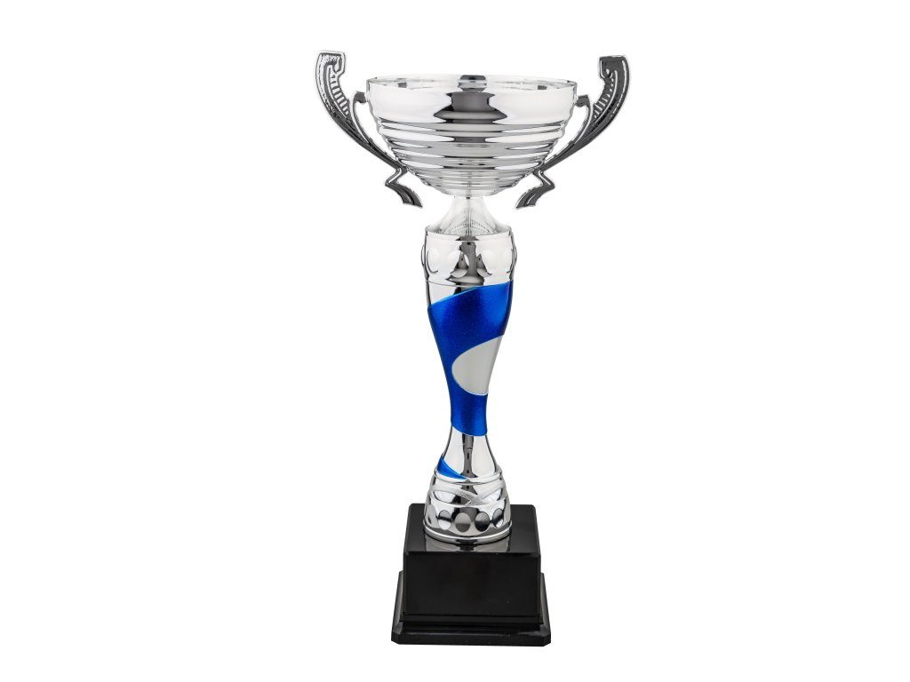 La Copa Silver and Blue es un elegante trofeo. Está fabricada con un gran cuenco de metal con asas ornamentadas montado sobre una columna de plástico. La copa está fijada a una base de PVC con peso. Disponible en 3 tamaños diferentes.