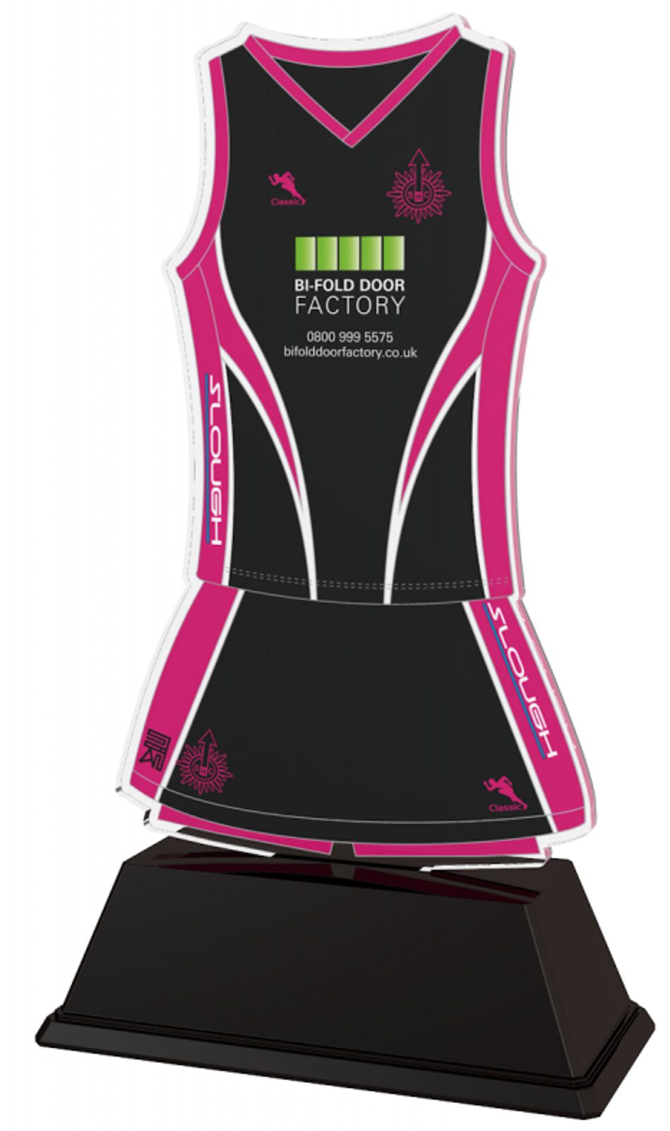 Tenga el uniforme real de su equipo impreso en el magnífico Reconocimiento de Kit de Hockey para Mujeres de Acrílico Personalizado. Al igual que con algunos de los uniformes legendarios que nos han encargado, podemos producir exactamente el mismo reconocimiento para su próxima premiación. Por un pequeño cargo adicional, también podemos imprimir nombres y números individuales en la parte posterior.