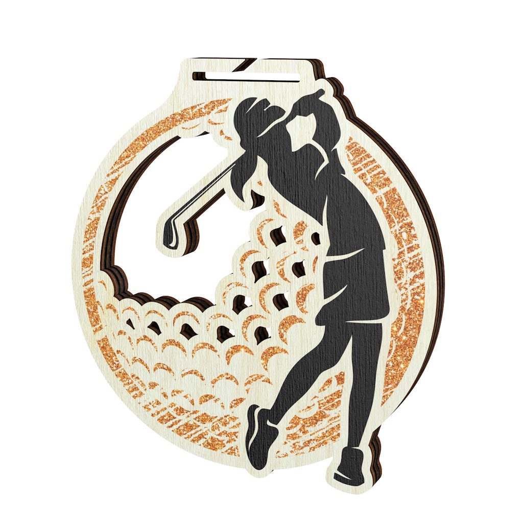 Medalla Acacia de Madera Ecológica para Golfista Femenina - Bronce