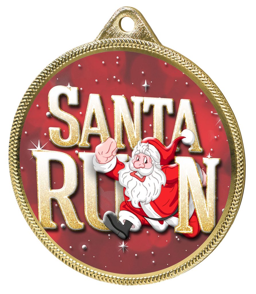 Medalla Carrera de Santa (Rojo) Impresión Texturizada 3D a Color Completo de 2 1/8 - Oro