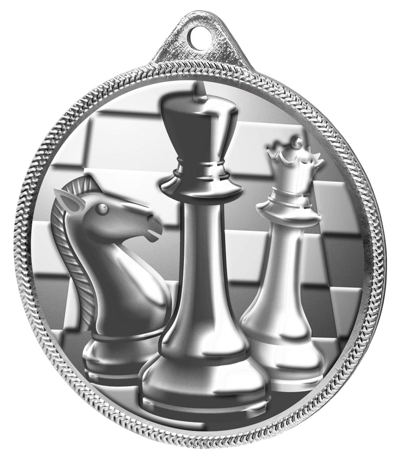 Medalla Clásica de Ajedrez con Textura 3D en Plata