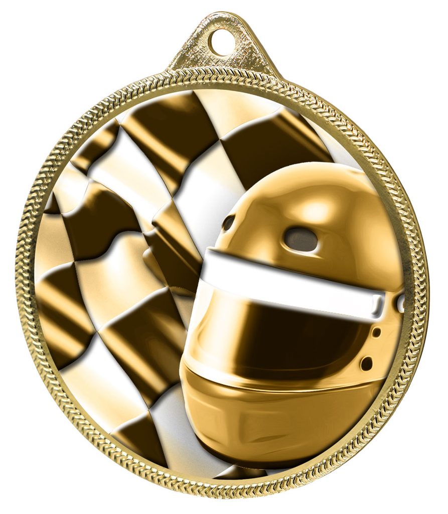 Medalla Clásica de Casco y Bandera de Deportes Motorizados con Impresión 3D en Oro