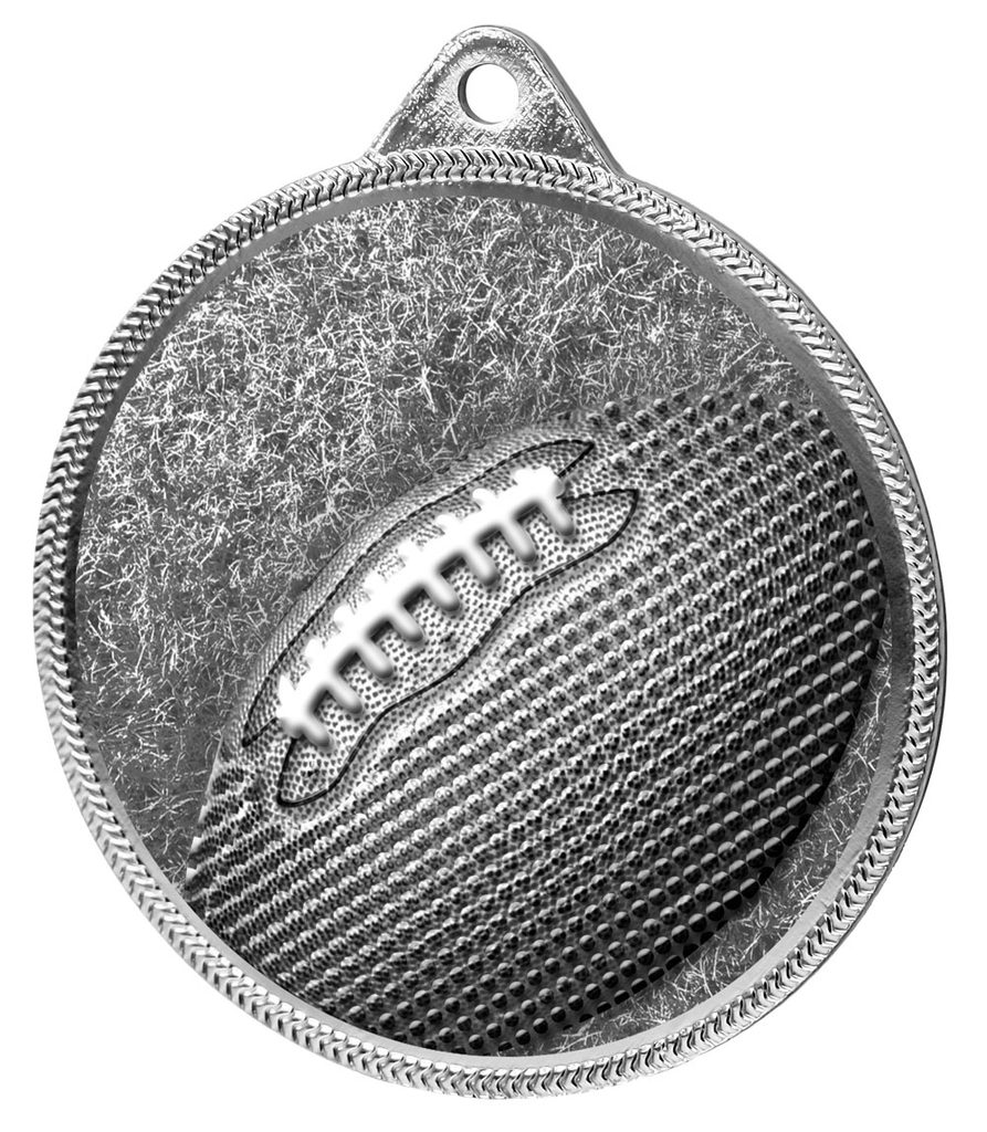 Medalla Clásica de Fútbol Americano con Textura 3D en Plata