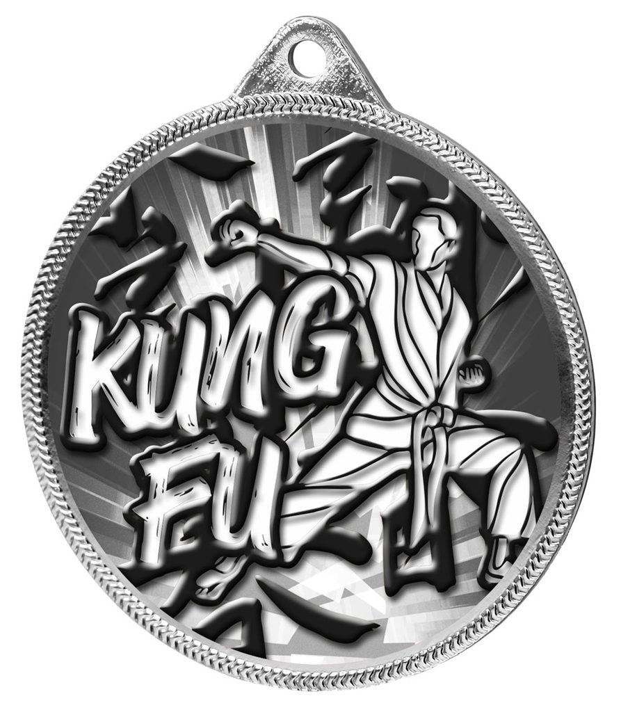 Medalla Clásica de Kung Fu con Textura 3D en Plata