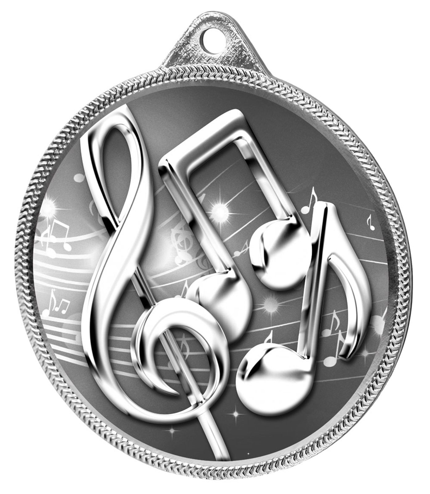 Medalla Clásica de Notas Musicales con Impresión 3D en Plata