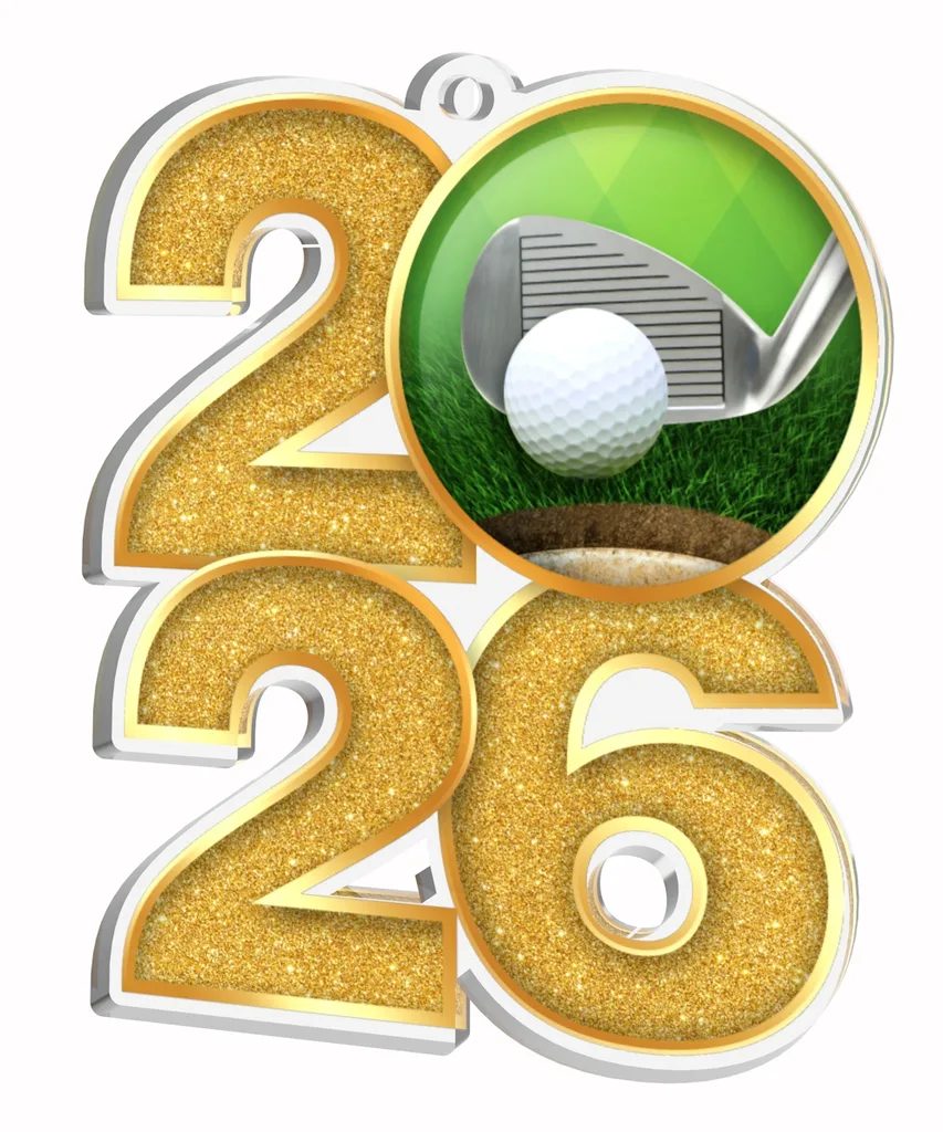 La Medalla de Acrílico 2026 es parte de una nueva y emocionante línea exclusiva disponible en acabados dorado, plateado o bronce. Fabricada en un tamaño grande de 6 cm.