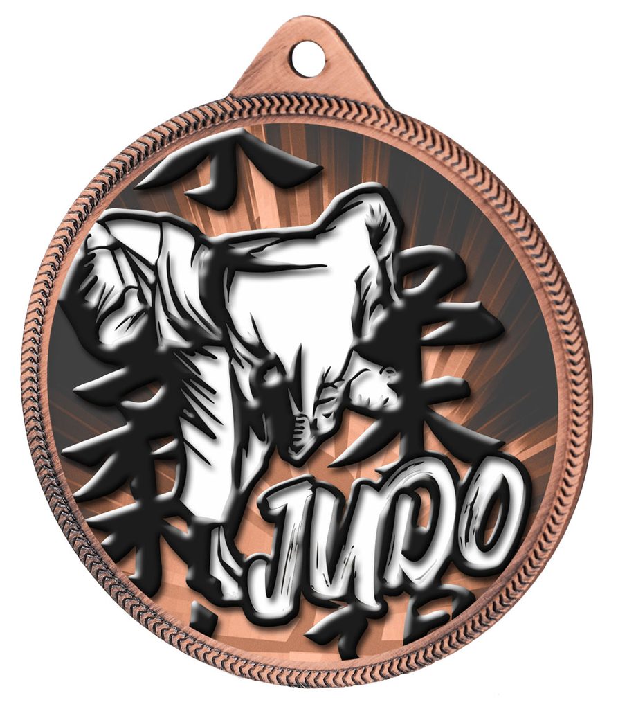Una medalla de judo verdaderamente excepcional de 5.4 cm fabricada en hierro. La medalla ha sido impresa utilizando la última tecnología de recubrimiento texturizado 3D, haciendo que la medalla cobre vida con una impresión de color antiguo en relieve. ¡Dé un impulso a su próxima ceremonia de premiación con estas modernas medallas que seguramente harán brillar los ojos de quien las reciba!