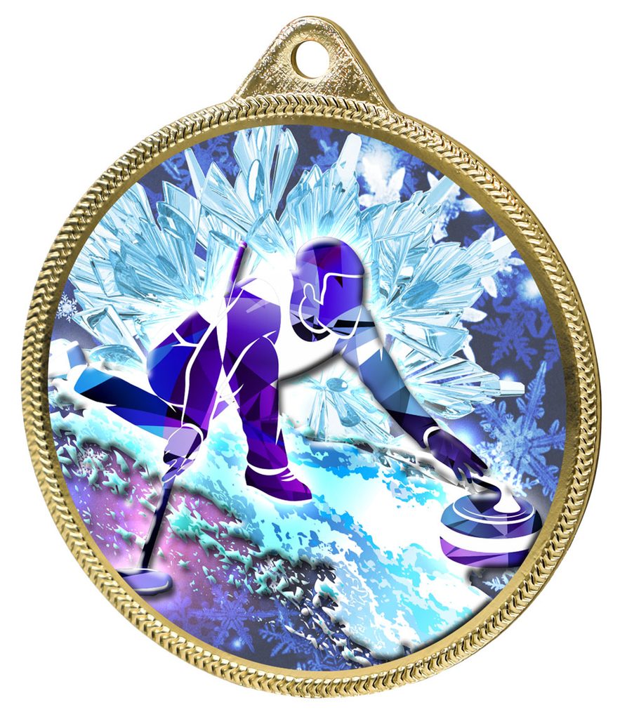 Medalla de Curling con Impresión Texturizada 3D a Color Completo de 2 1/8" - Oro