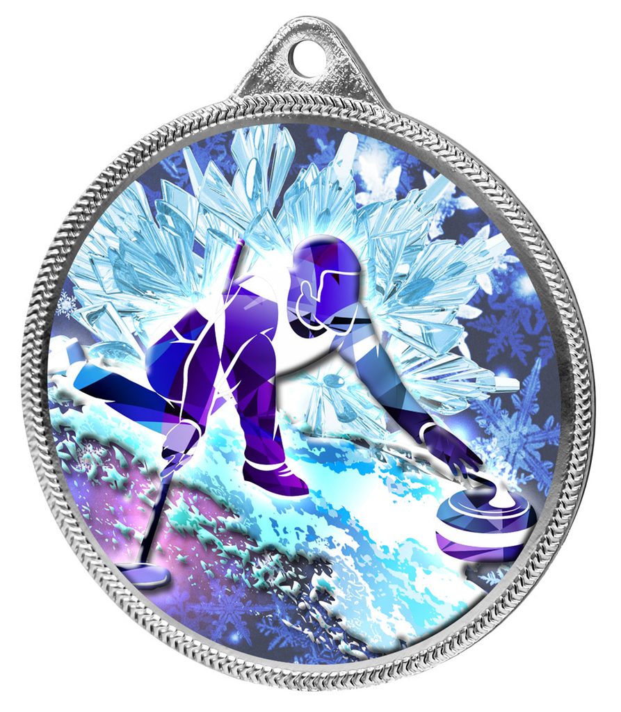 Medalla de Curling con Impresión Texturizada 3D a Color Completo de 2 1/8" - Plata