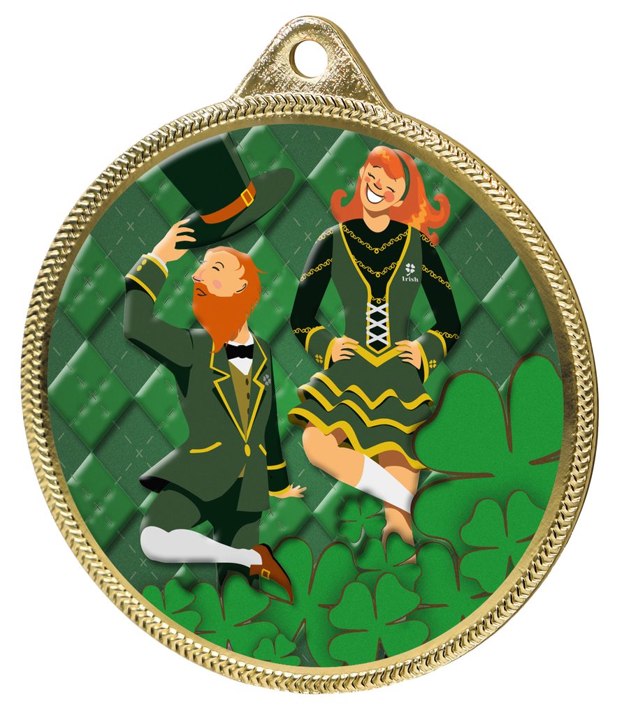 Medalla de Danza Irlandesa con Textura de Color 3D Dorada