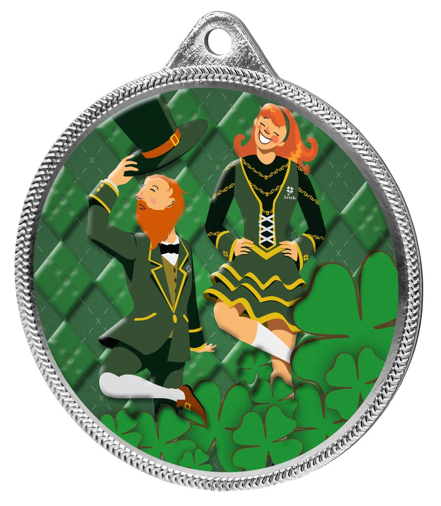 Medalla de Danza Irlandesa con Textura en Color 3D Plateada