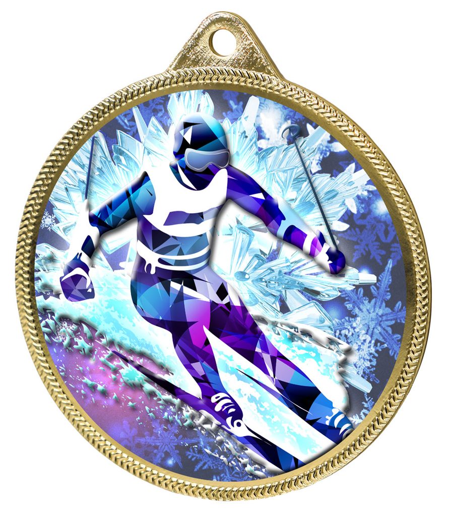 Medalla de Esquí con Impresión Texturizada 3D a Color Completo de 2 1/8" - Oro