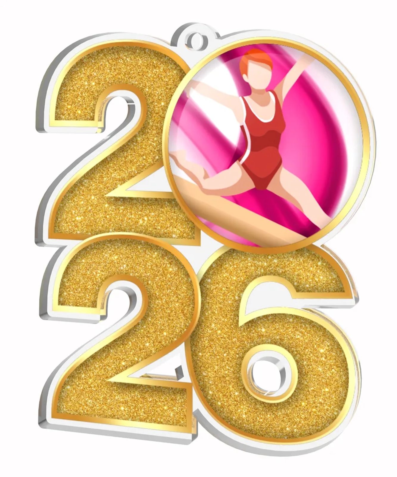 La Medalla de Acrílico 2026 es parte de una nueva y emocionante línea exclusiva disponible en acabados dorado, plateado o bronce. Fabricada en un tamaño grande de 6 cm.