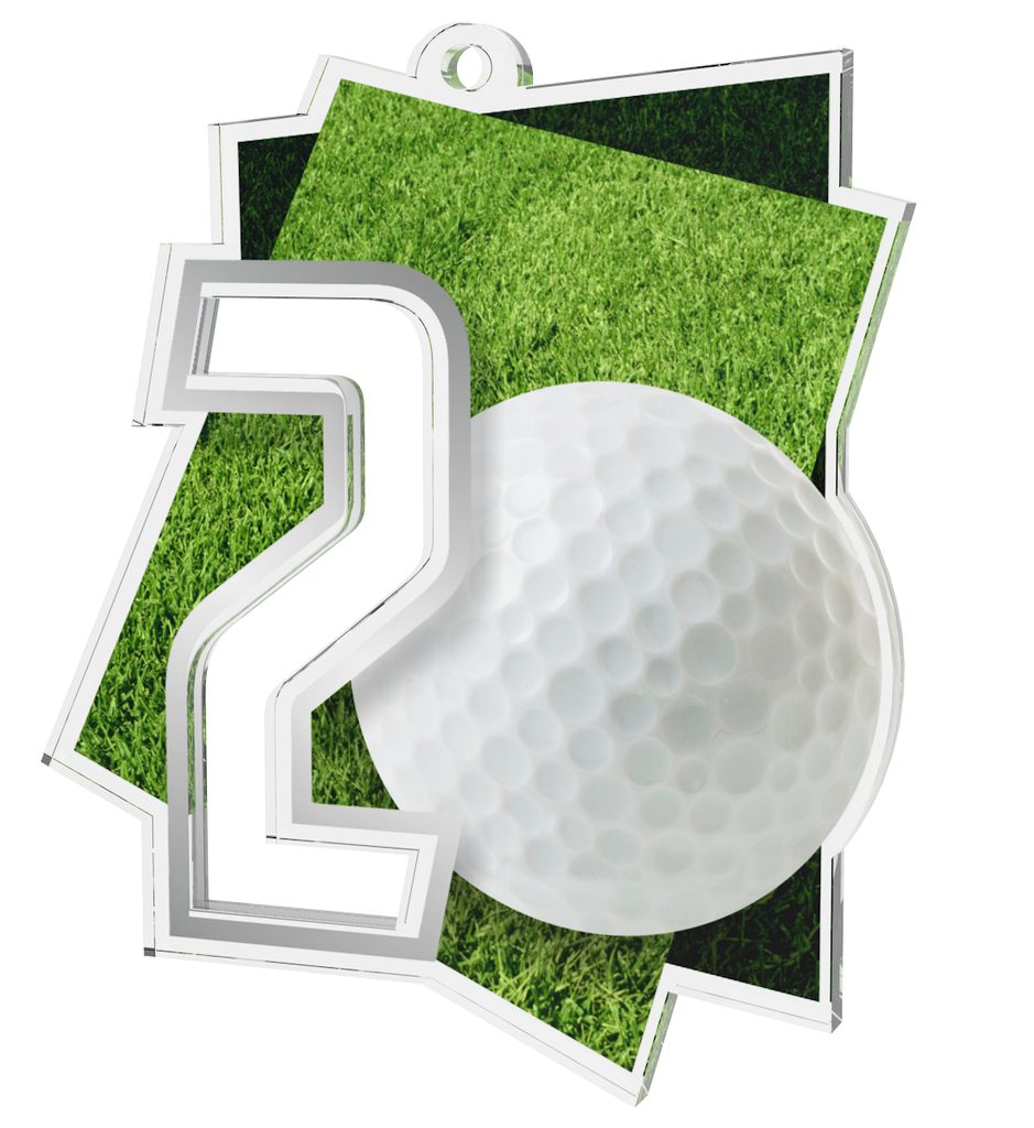 La Medalla de Golf Número 2 de tamaño 2 3/4" está fabricada en acrílico de 1/8" de grosor con una impresión a color de alta calidad en el reverso. El número está expertamente cortado, lo que le da un estilo único. Seleccione entre tres tamaños grandes. La medalla viene completa con un lazo para acomodar una cinta.