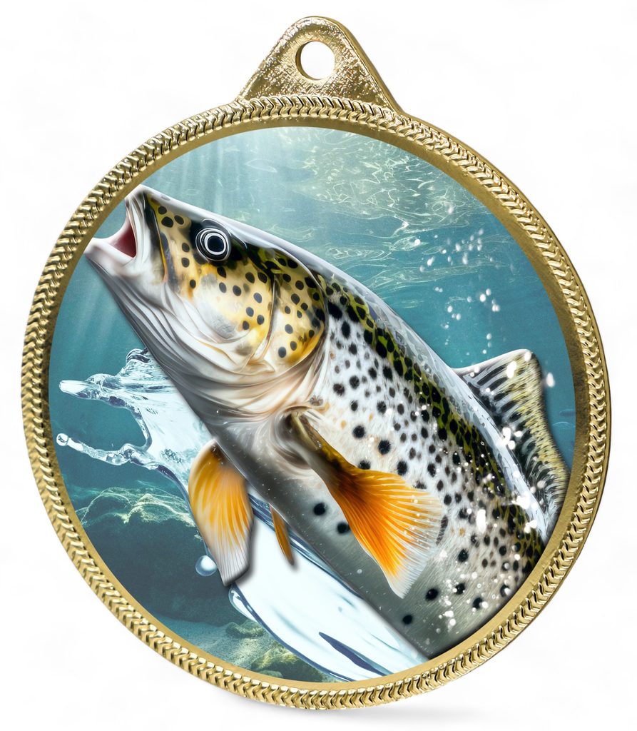 Medalla de Oro con Textura de Pesca de Trucha