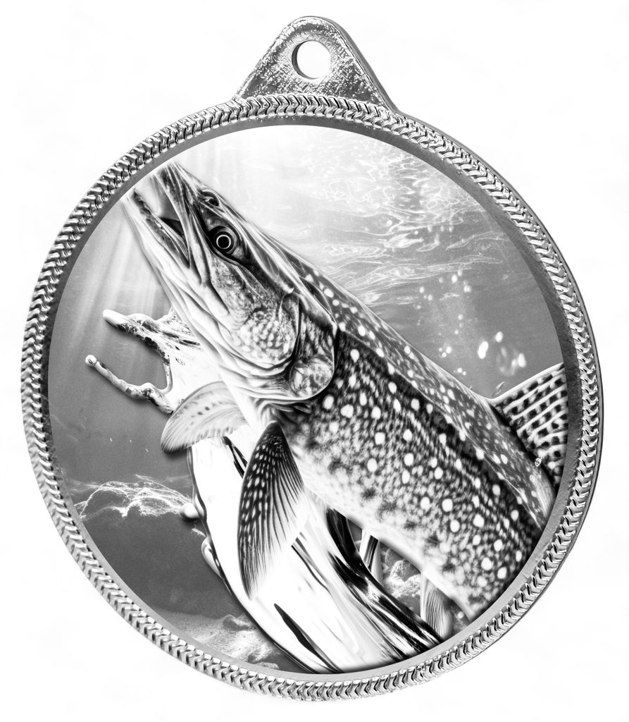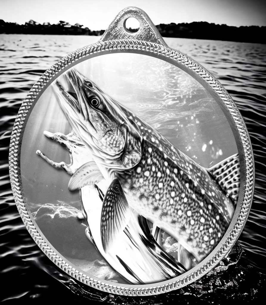 Medalla de Plata Clásica con Textura de Pesca de Pike