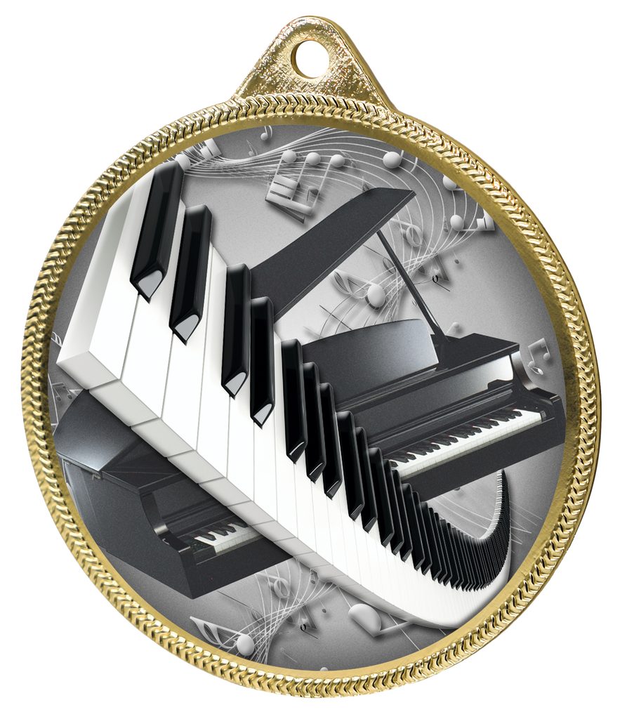 Una medalla verdaderamente sobresaliente de Piano y Teclado de 5.4 cm fabricada en hierro. La medalla ha sido impresa utilizando el último revestimiento de textura 3D, haciendo que la medalla cobre vida con una impresión a todo color en relieve vibrante. ¡Dale un impulso a tu próxima presentación con estas modernas medallas que seguramente harán brillar los ojos de quien las reciba!