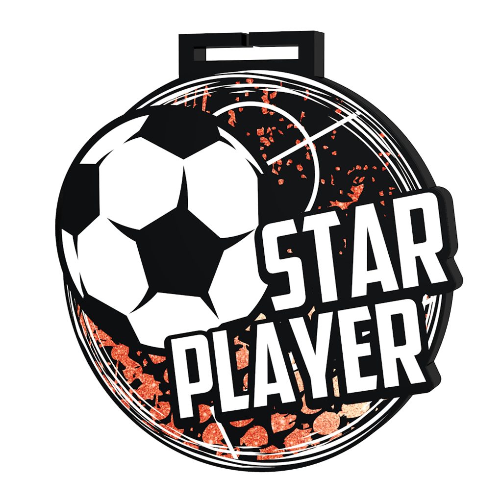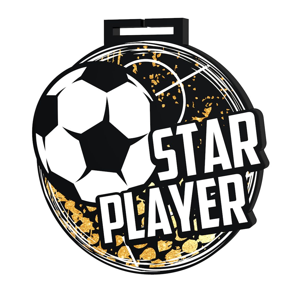 La Medalla Gigante de Estrella del Fútbol es una pieza impresionante con un diseño llamativo, fabricada exclusivamente por Trophy Monster. Elaborada en acrílico negro grueso de 5/16", esta medalla cuenta con una impresión a color de alta calidad que sin duda captará la atención.
