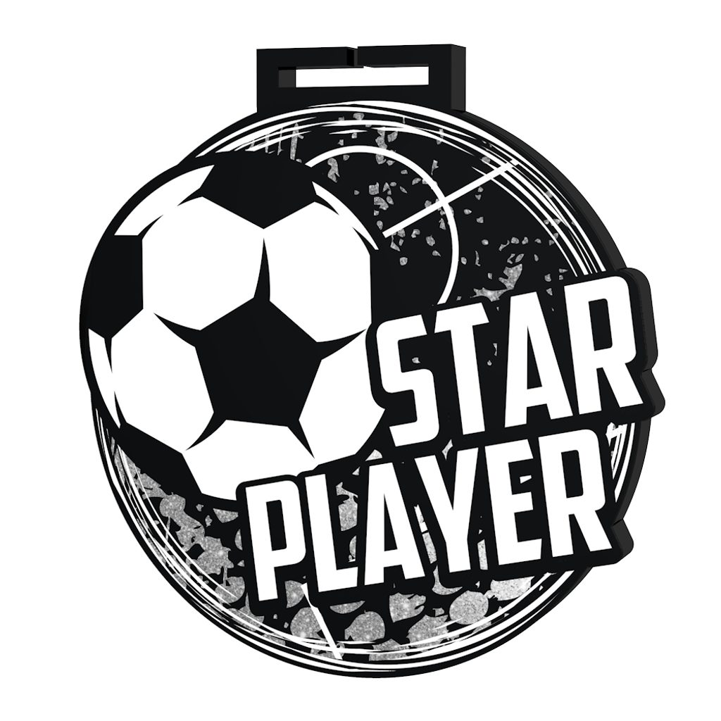 La Medalla Gigante de Estrella del Fútbol es una pieza impresionante con un diseño llamativo, fabricada exclusivamente por Trophy Monster. Elaborada en acrílico negro grueso de 5/16", esta medalla cuenta con una impresión a color de alta calidad que sin duda captará la atención.