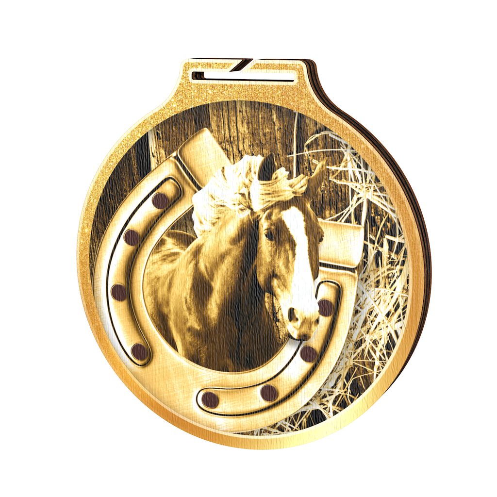 Medalla Habitat Clásica de Madera Ecológica Ecuestre Oro