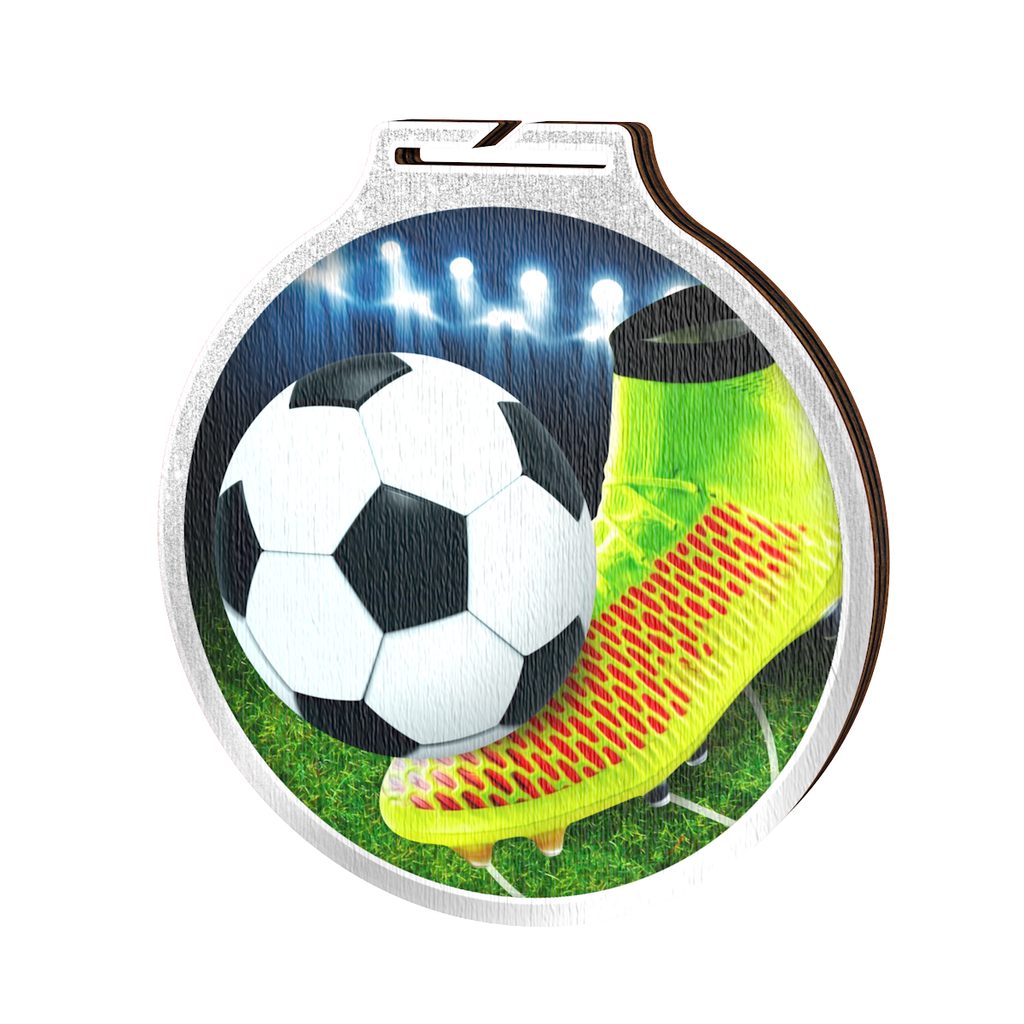 Medalla Habitat de Madera Ecológica Fútbol y Bota Plata