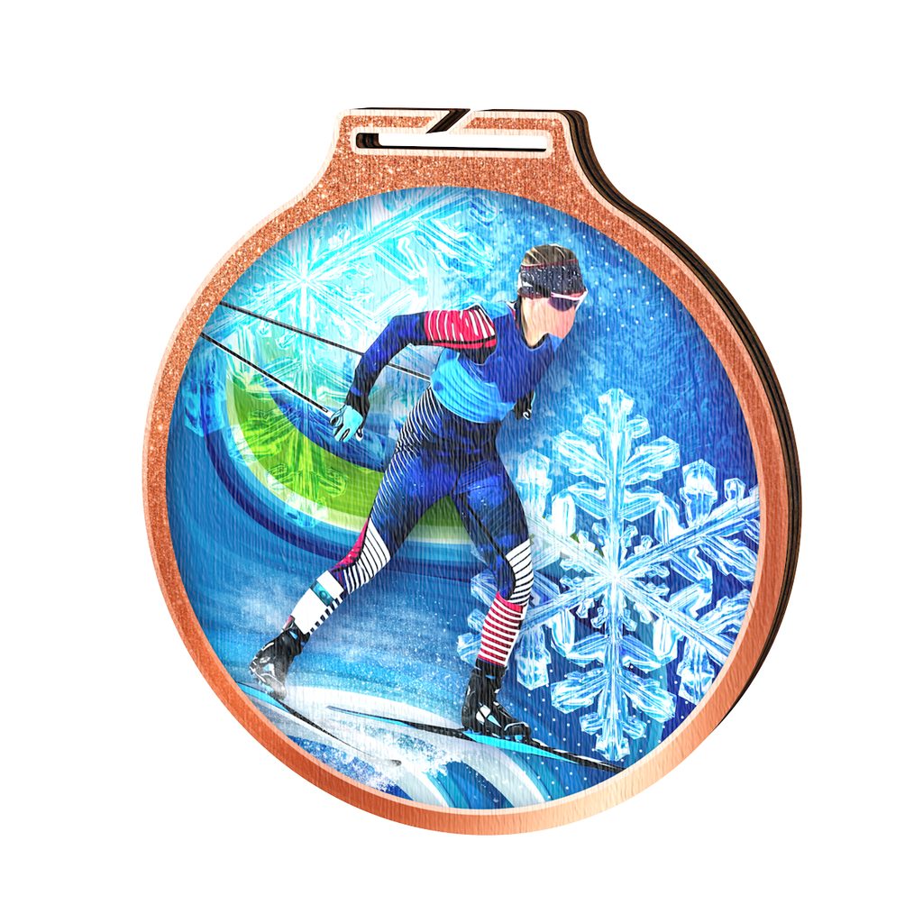 Medalla Habitat de Madera Ecológica para Esquí Bronce