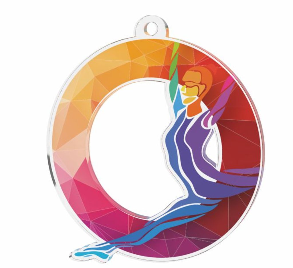 La Medalla Rio está fabricada en acrílico de 0.4 cm de grosor con una impresión a color de alta calidad en el reverso. Recortada con precisión en el centro, ofrece un estilo de medalla único. Elija entre tres tamaños. La medalla incluye un orificio para colocar una cinta.