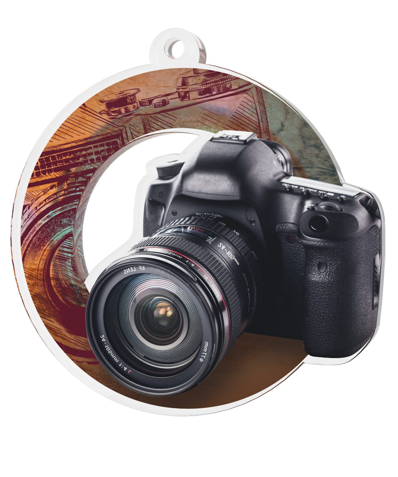 La Medalla Río está fabricada en acrílico de 0.4 cm de grosor con una impresión a color de alta calidad en el reverso. Cortada con precisión en el centro, ofrece un estilo de medalla único. Elija entre tres tamaños. La medalla incluye un orificio para colocar una cinta.