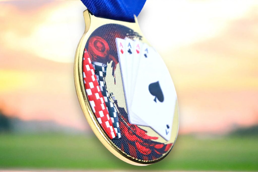 Medalla metálica, tamaño 2 1/4", impresión a color en 3D.
