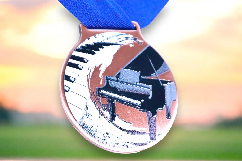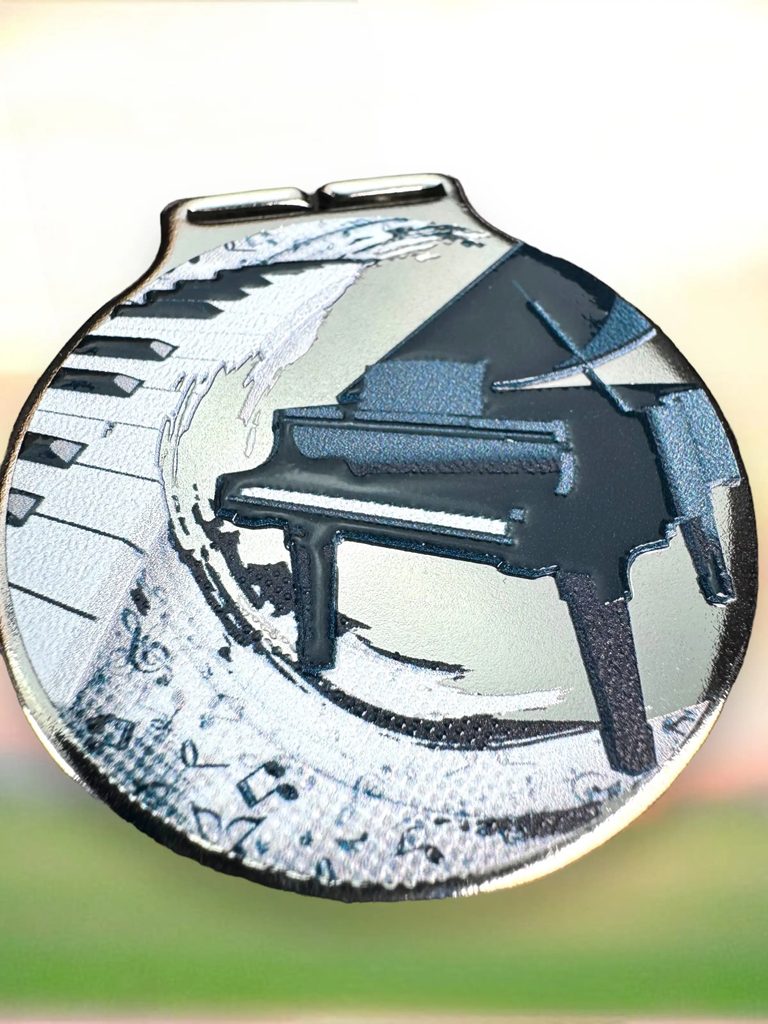 Medalla metálica, tamaño 2 1/4", impresión a color 3D.