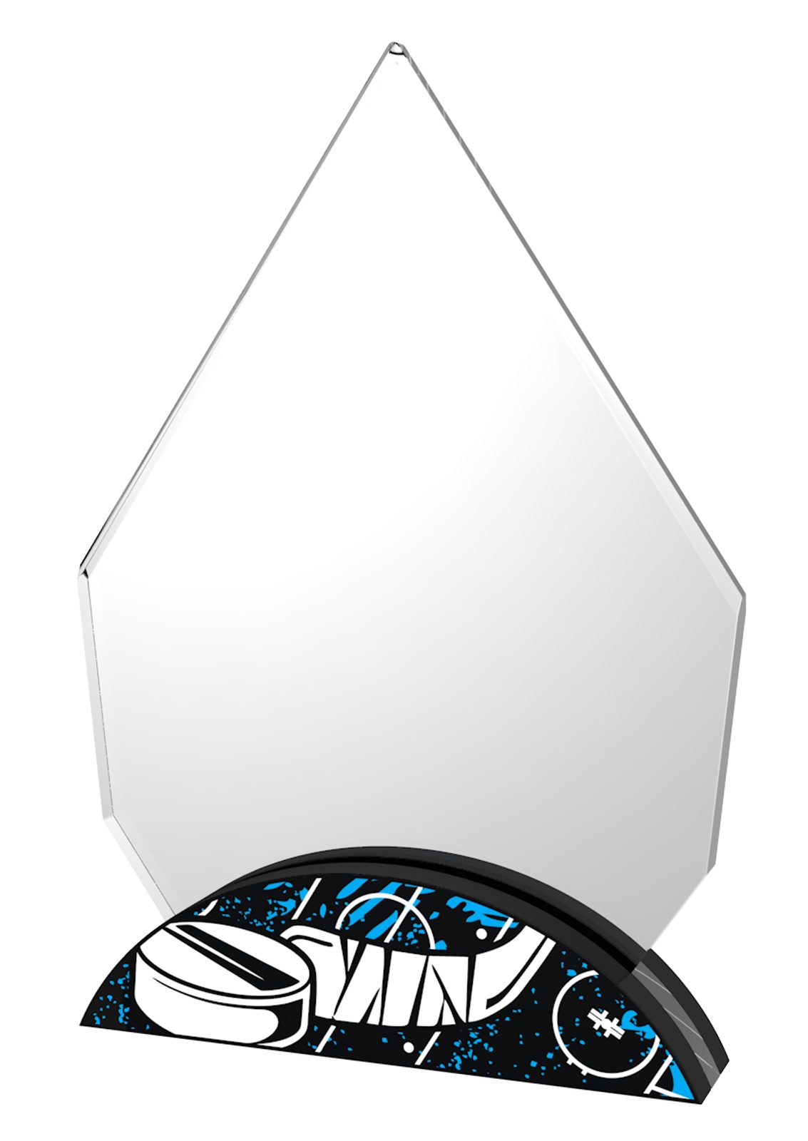 El Premio de Acrílico Impreso Metro para Hockey sobre Hielo es un trofeo verdaderamente ingenioso diseñado internamente. Este premio está fabricado con acrílico premium de 0.4" de grosor montado entre dos piezas de acrílico negro de 0.4" de grosor con forma especial. Esto proporciona al trofeo una base profesional y resistente.