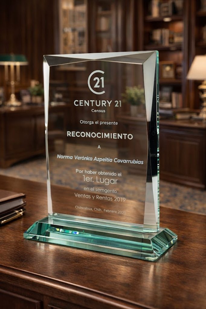 El Premio de Vidrio Grande Georgia es un trofeo de cristal moderno, de alta calidad, con diseño biselado grueso, montado sobre una base de vidrio. Incluye una elegante caja de presentación forrada de seda. GROSOR DE 3/4"