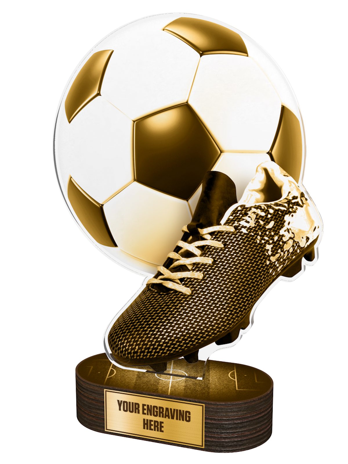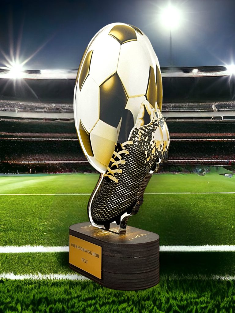 Para hacer este premio aún más especial, ofrecemos una placa adhesiva GRATUITA con grabado y el texto de su elección. Esto le permite personalizar el trofeo y hacerlo verdaderamente único para su evento o ocasión. Ya sea que lo esté presentando al mejor jugador de su equipo o utilizándolo como un reconocimiento corporativo, este trofeo seguramente impresionará.