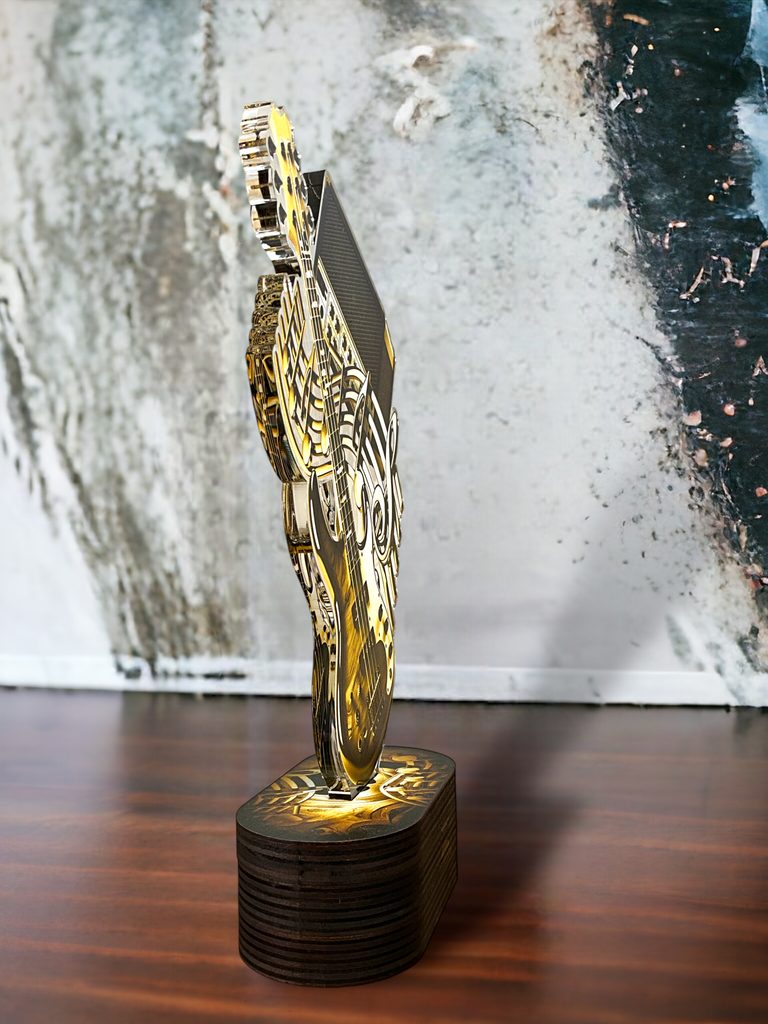 Un trofeo es el punto focal perfecto para cualquier premiación y seguramente dejará una impresión duradera en todos los que lo vean. Su diseño elegante y moderno captará la atención, y los materiales de alta calidad garantizan que perdure en el tiempo.