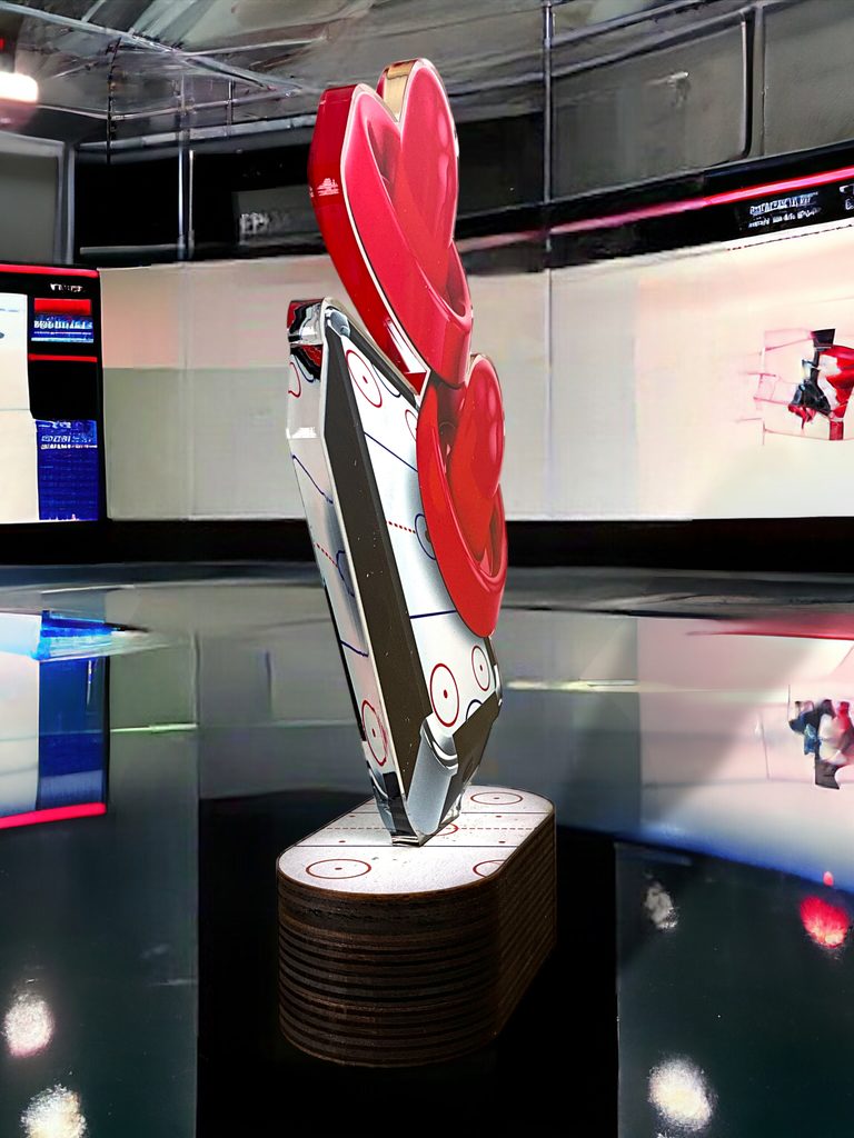 Presentamos el trofeo de premiación moderno e innovador que garantiza impresionar. Con un concepto completamente único, este trofeo está fabricado con una combinación de acrílico impreso biselado, montado elegantemente sobre una base inclinada especialmente diseñada de madera de abedul sustentable, con un acabado impreso que realza su atractivo estético general.
