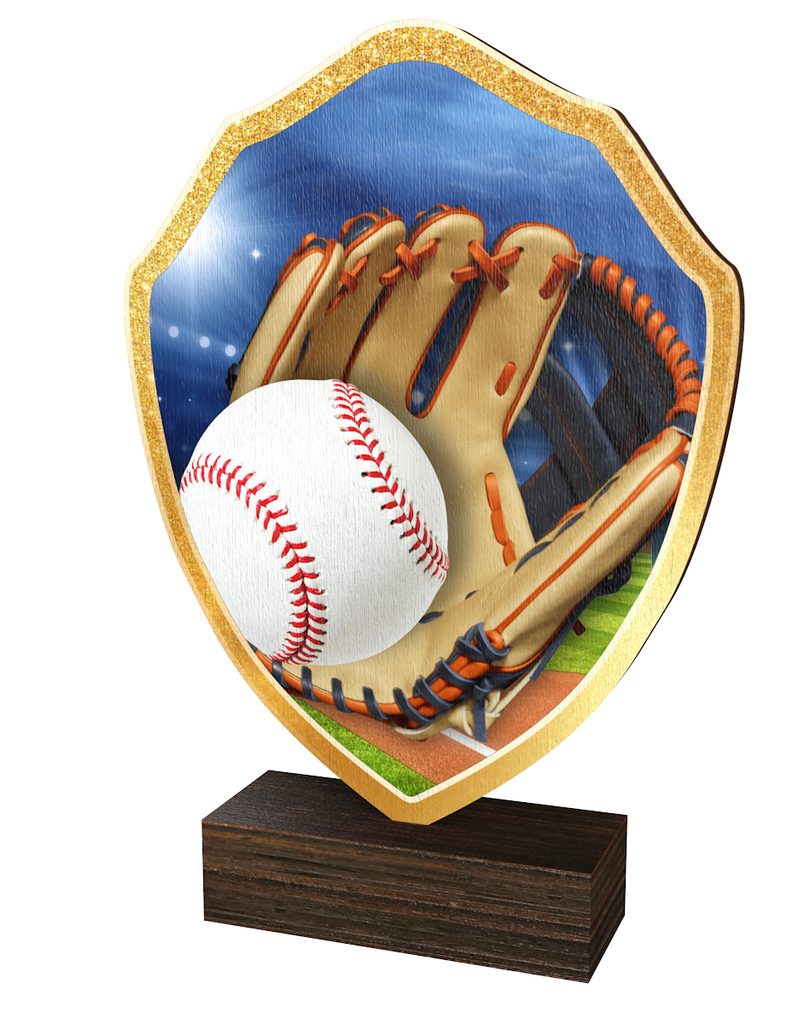 Trofeo Arden de Madera Real con Escudo de Béisbol
