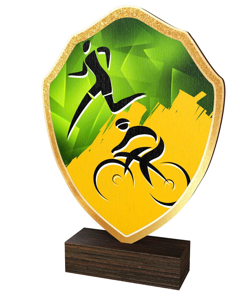 Trofeo Arden de Madera Real con Escudo de Triatlón
