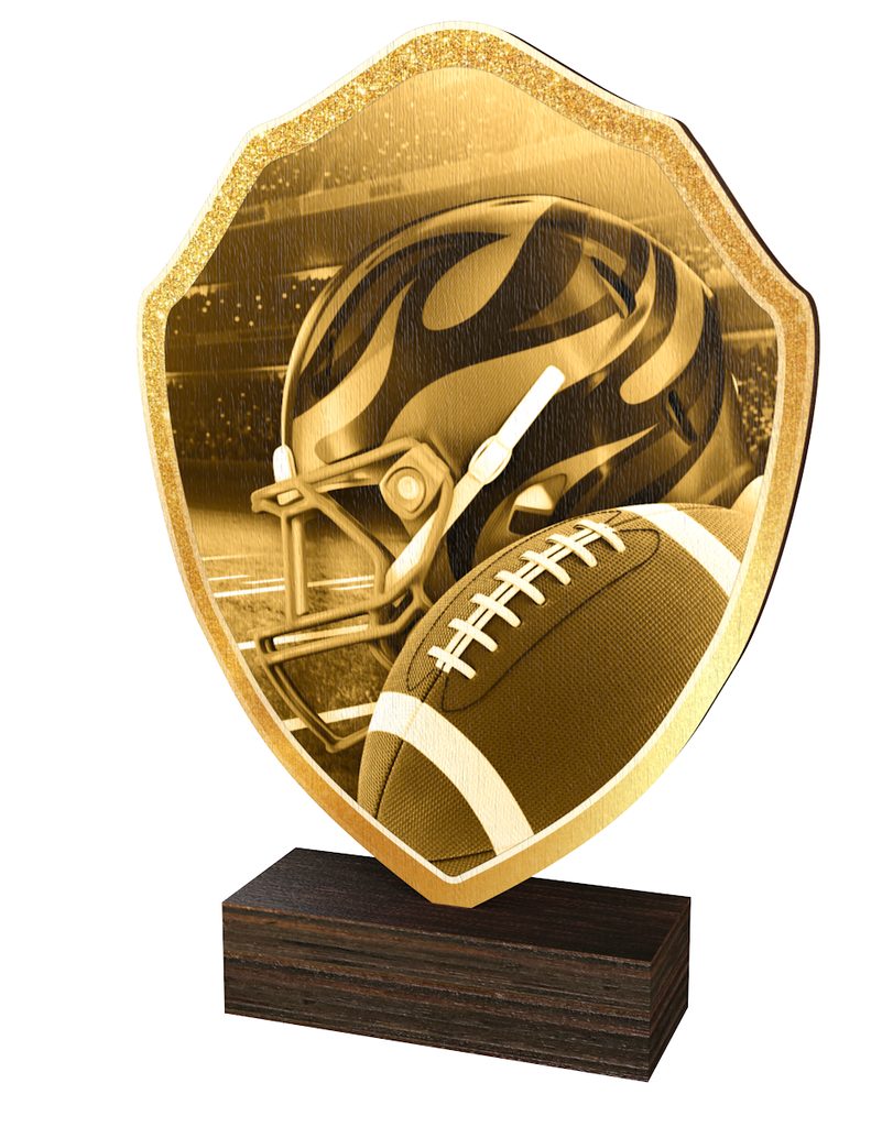Trofeo Arden de Madera Real con Escudo de Fútbol Americano