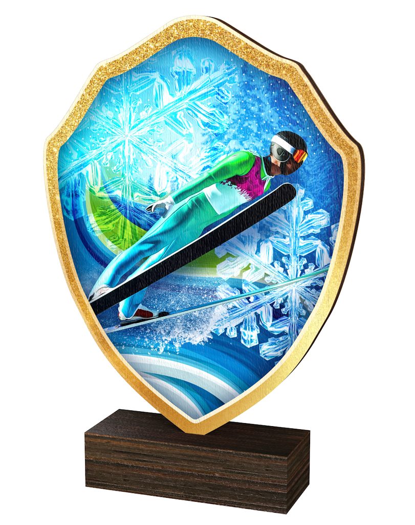 Trofeo Arden de Madera Real con Escudo de Salto de Esquí