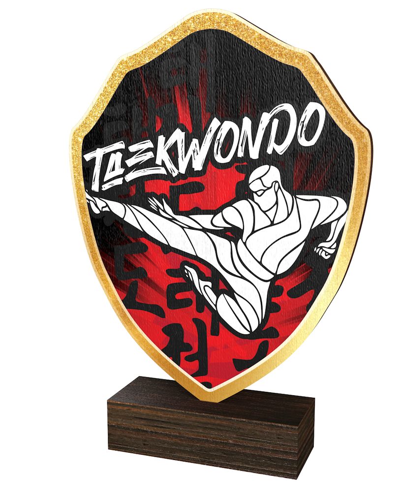 Trofeo Arden de Madera Real con Escudo de TaeKwondo