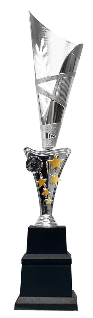 El Trofeo Conifer Plata y Negro con doble base es un diseño único y exclusivo de Trophy Monster. De estilo elegante, presenta un motivo de estrella con una llamativa estructura cónica que se eleva hacia el cielo. Está montado sobre una doble base, lo que lo convierte en un premio perfecto para uso estacional y diseñado para durar muchos años.