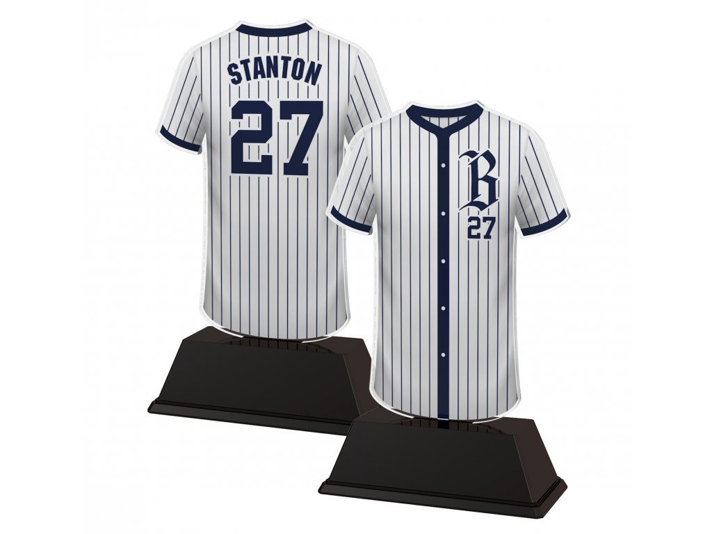 Tenga la camiseta real de su equipo impresa personalmente en el magnífico Trofeo de Béisbol Personalizado en Acrílico. Por un pequeño cargo adicional, también podemos imprimir nombres y números individuales en la parte posterior o frontal de las camisetas. Para este servicio, simplemente haga clic en el botón de selección a continuación y, después de realizar el pedido, envíe los detalles en respuesta a su confirmación de pedido.