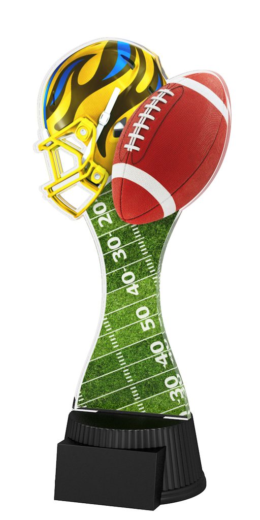 El Trofeo de Fútbol de Houston es un galardón de estilo moderno. Con una forma sobresaliente, este trofeo cobra vida con una impresión a todo color de doble cara en acrílico de 6 mm de grosor montado sobre una base de PVC negro.